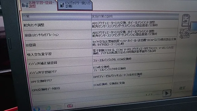 日産・セレナ(C25)車検整備後に日産専用診断機コンサルト3+を使い車両内のECU診断&再学習他を進めます。